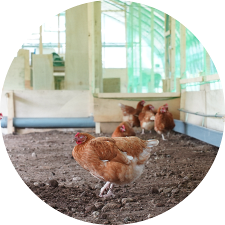私たちがこだわりぬいた自然の恵みや餌を与えることにより、安心して食べられる「おいしい卵」を生産することができました。